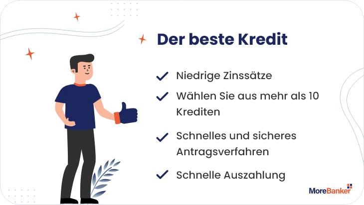 Bei MoreBanker arbeiten wir daran, Ihnen den besten Überblick über Ihre Kreditoptionen zu geben.
